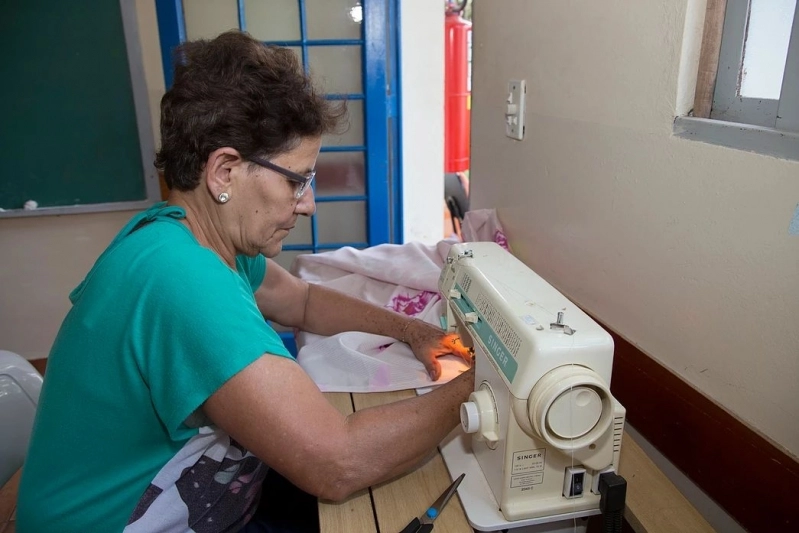 Outra ação do ateliê é desenvolver habilidades e formar novos profissionais, promovendo cursos variados como de confecção de bolsas, costura criativa e manual, manuseio de máquinas, macramê, roupas PET entre outros nesta área.