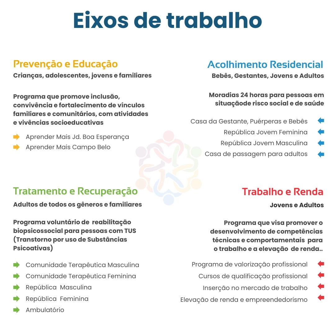 8. Trabalho Decente e Crescimento Econômico - Promovemos ações com jovens e adultos para aquisição da carteira de trabalho, preparação e entrevista de emprego, desenvolvimento humano e de habilidades profissionais que favoreçam o acesso e a inserção no trabalho, bem como o empreendedorismo, apoiando atividades produtivas, o crescimento econômico e a elevação da renda.